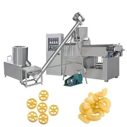 single-screw system to ensure optimal semolina mixing, compression and extrusion. Once the dough is kneaded to the required consistency, it goes through fitted dies to produce the required shapes and cut to verious length. After drying, the pasta is cooled and stabilized in the industrial pasta machine and then transported to storage or packaged directly.