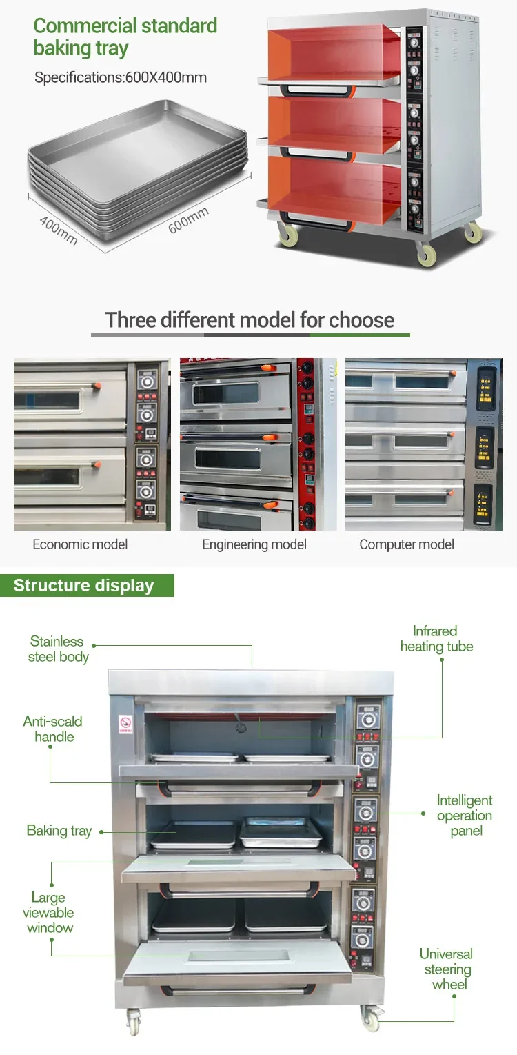 Commercial Baking Equipment 3 Deck 6 Tray Gas Electric Bakery Bread Deck Oven for Cake Pizza